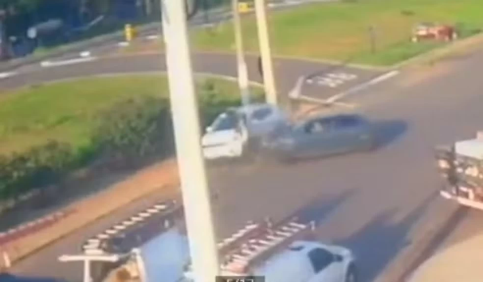 Um motociclista de 44 anos ficou ferido após se envolver em um acidente com dois veículos, na manhã desta quinta-feira, 22, na Avenida Milton Spínola, em Piraju (SP). O momento da colisão foi flagrado por uma câmera de segurança, que registrou o motociclista sendo lançado ao ar após bater de frente com um carro.