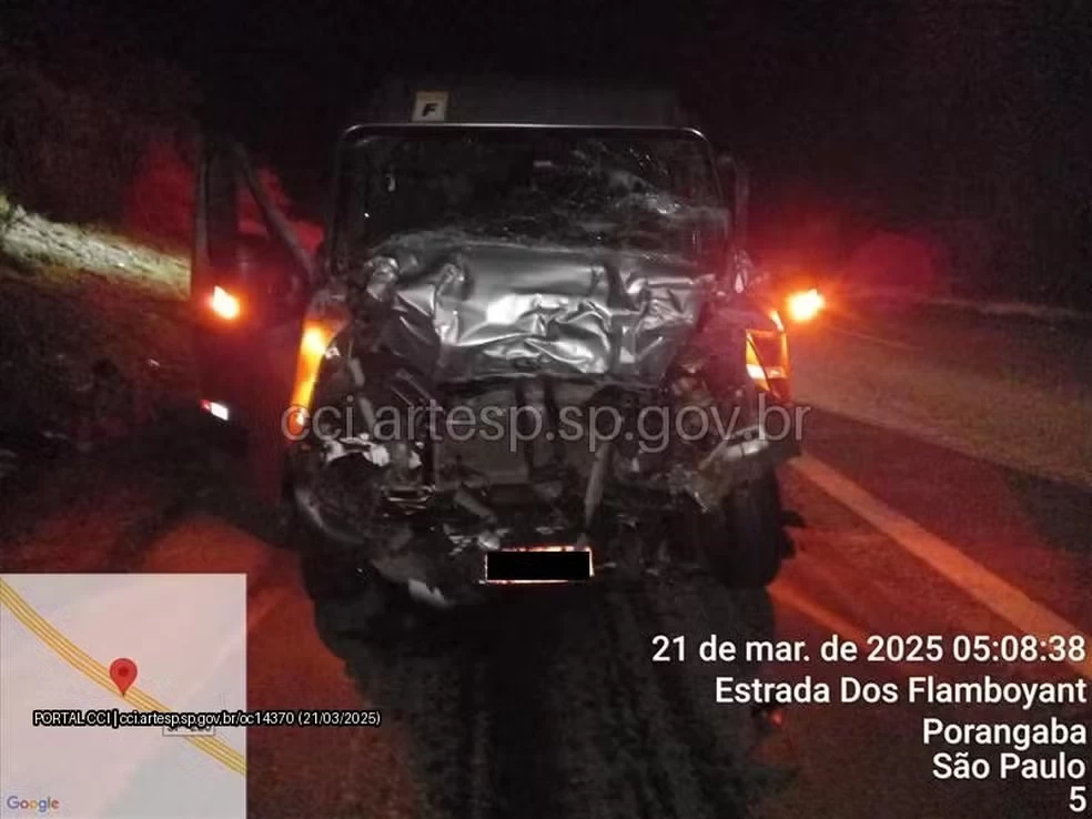 Na madrugada desta sexta-feira (21), uma van com sete passageiros colidiu na traseira de um caminhão na altura do quilômetro 170 da Rodovia Castello Branco (SP-280), em Porangaba (SP). O veículo seguia para São Paulo (SP) quando o motorista perdeu o controle da direção e não conseguiu frear ou desviar a tempo.