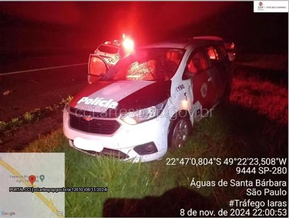 Uma viatura da Polícia Militar capotou, na noite desta sexta-feira, 8, na altura do quilometro 304, da Rodovia Castello Branco (SP 280), em Águas de Santa Bárbara (SP).
