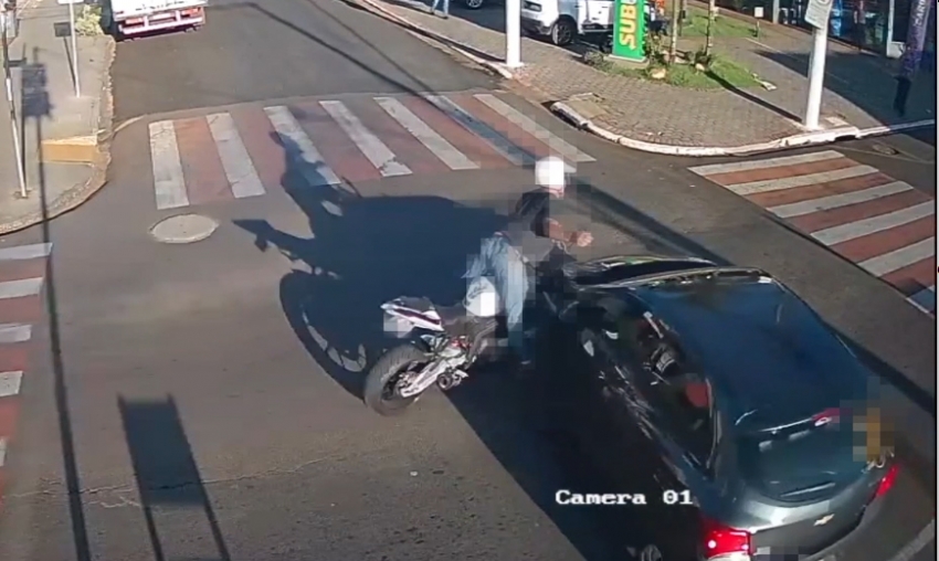 Na tarde de segunda-feira, 6 de novembro, as câmeras de videomonitoramento da empresa Server Security em Ourinhos capturaram um incidente de trânsito envolvendo uma motocicleta de alta cilindrada e um veículo GM/Onix, no centro da cidade. O acidente ocorreu por volta das 17h24, no cruzamento da Avenida Dr. Altino Arantes com a Rua Cardoso Ribeiro, próximo à Caixa Econômica Federal.