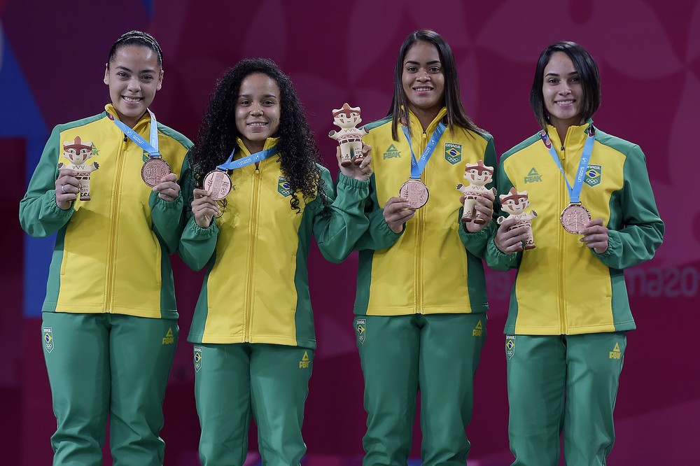 Tamires Santos, Fabiana Silva, Jaqueline Lima e Samia Lima com o bronze na duplas femininas — Foto: Alexandre Loureiro/COB